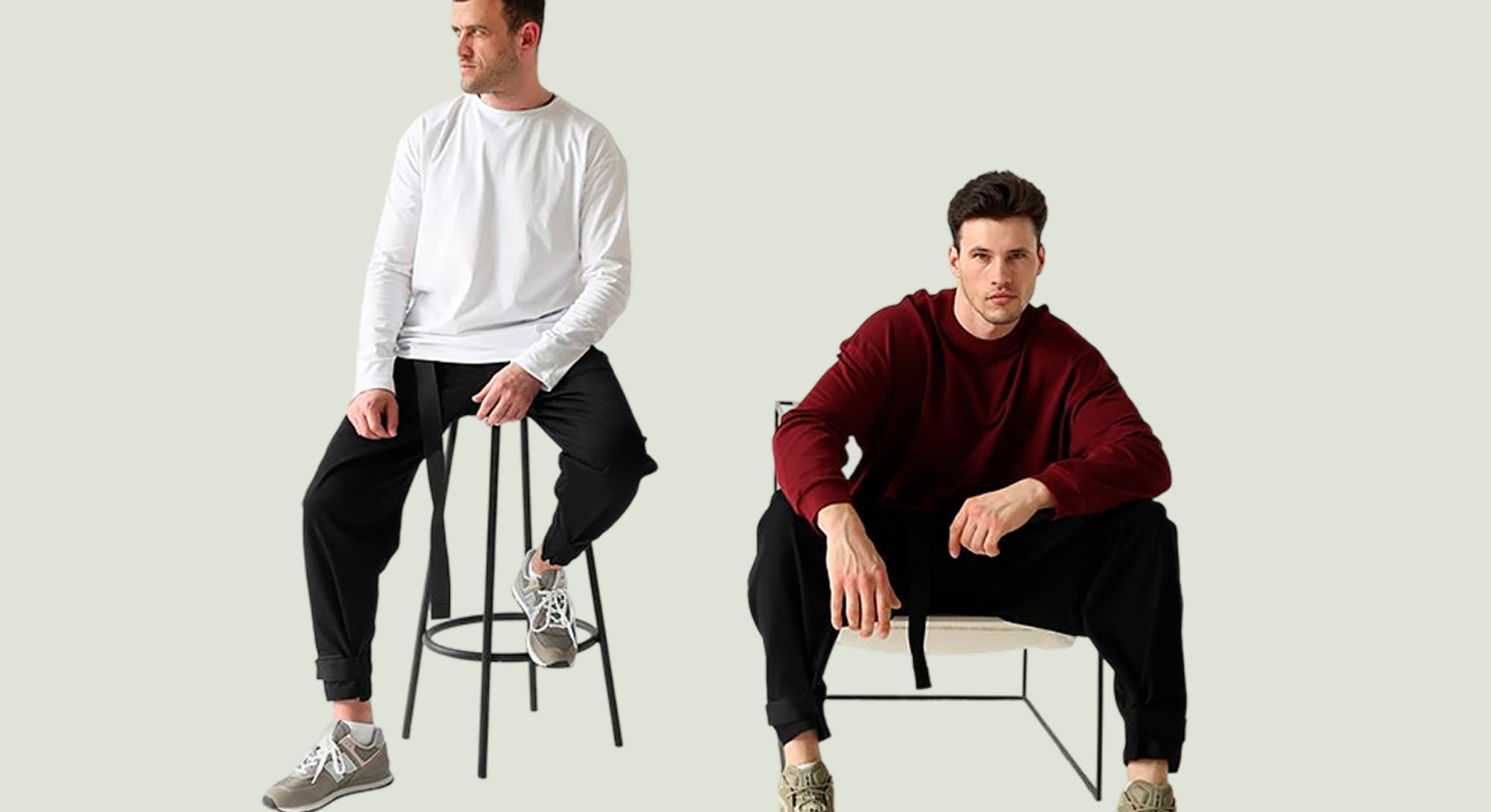 Два парня на стульях, один на барном